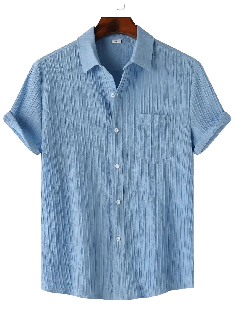 This men’s short-sleeved shirt is made of a polyester–cotton blend with a relaxed fit. It has a button-up front, chest pocket, and classic collar. The design combines well with jeans, chinos, or shorts for daily wear, travel, or leisure.